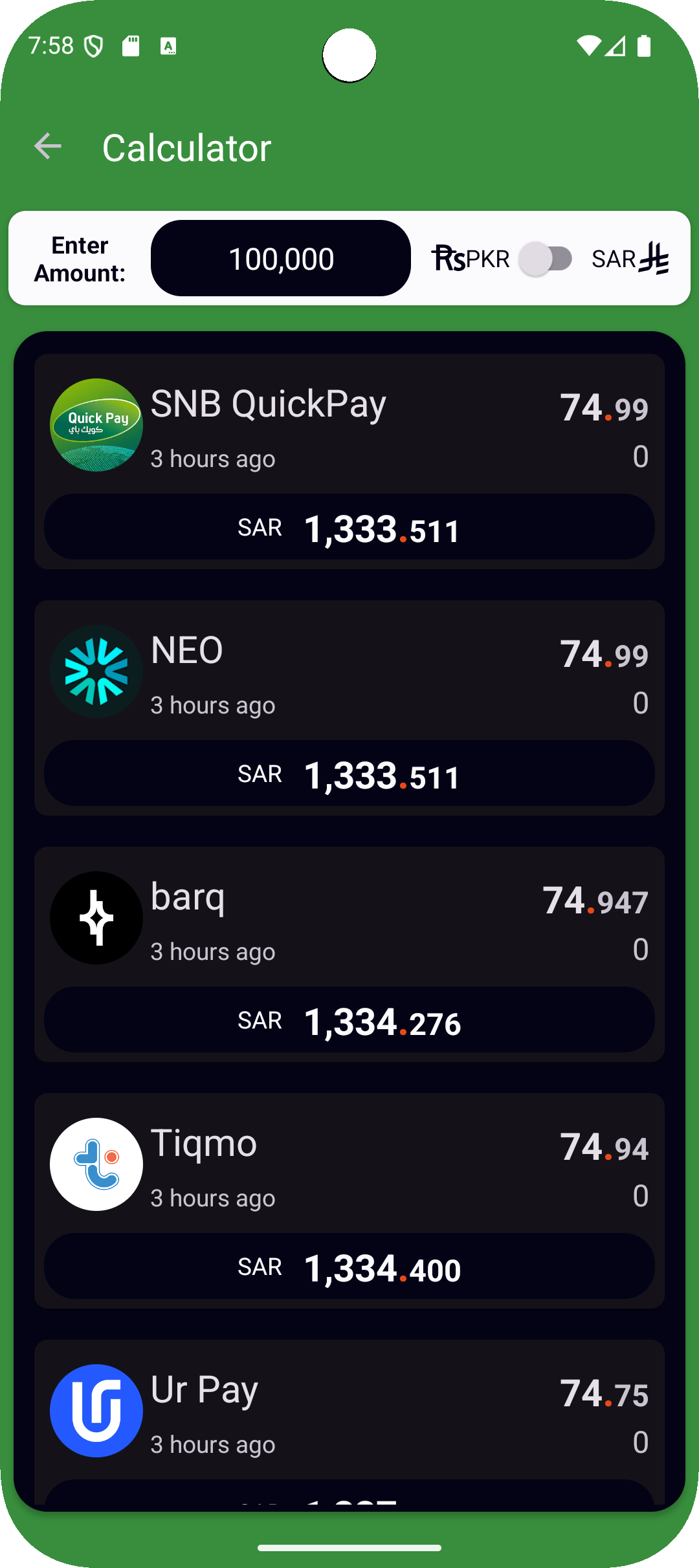 Compare multiple exchange houses and banks side-by-side, no more wasting time searching manually.